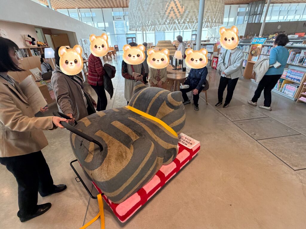 隣接するぎふメディアコスモスも見学していただき、春休み中でほぼいっぱいの自習コーナーや、小さなお子さんが喜ぶ読み聞かせコーナーもご案内させていただきました。